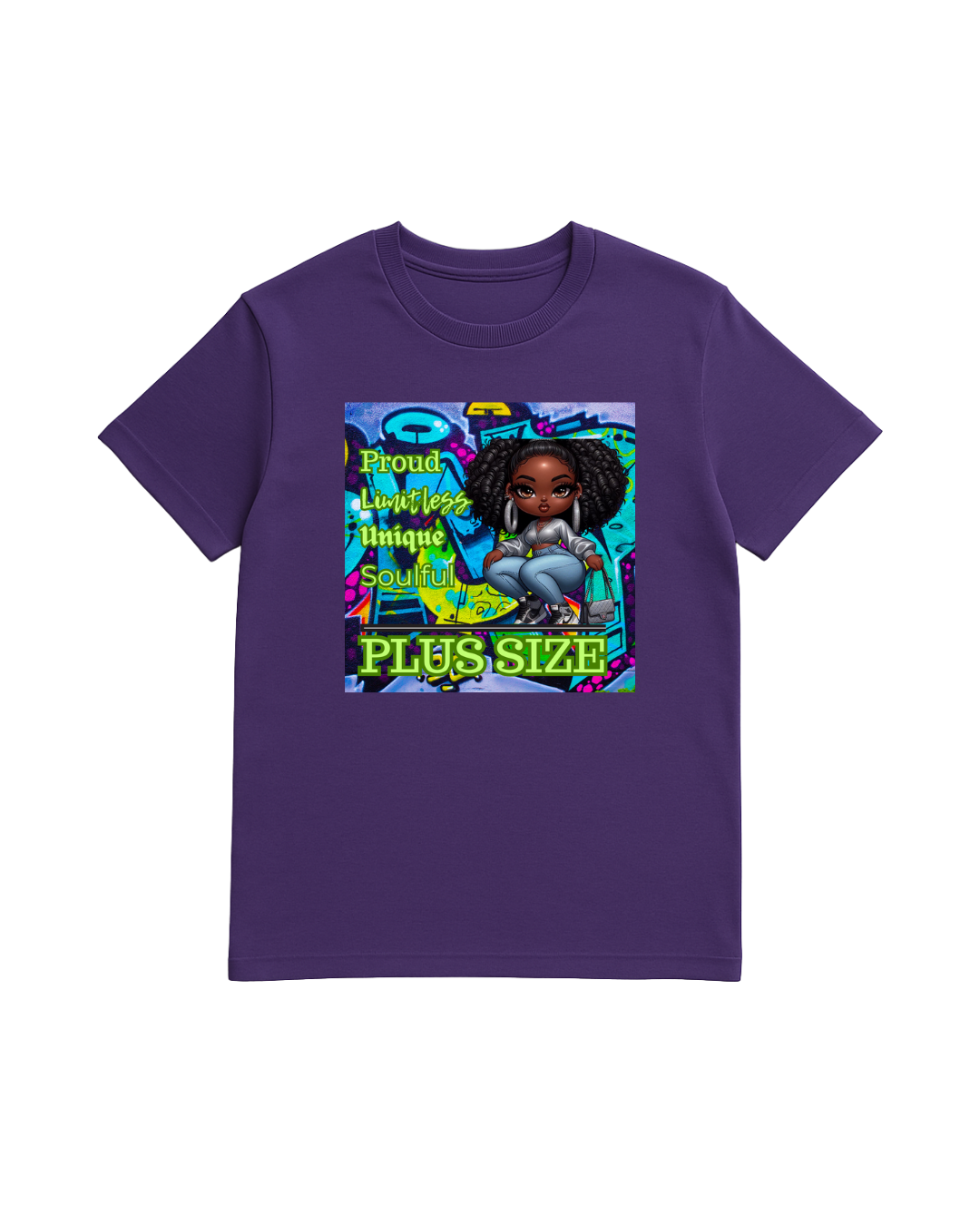 Celebrate curves, confidence, and character in this colorful graffiti-style tee. Designed for the plus-size queens who are Proud, Limitless, Unique, and Soulful, this shirt is more than fashion—it’s a vibe. Be seen. Be bold. Be unapologetically YOU.